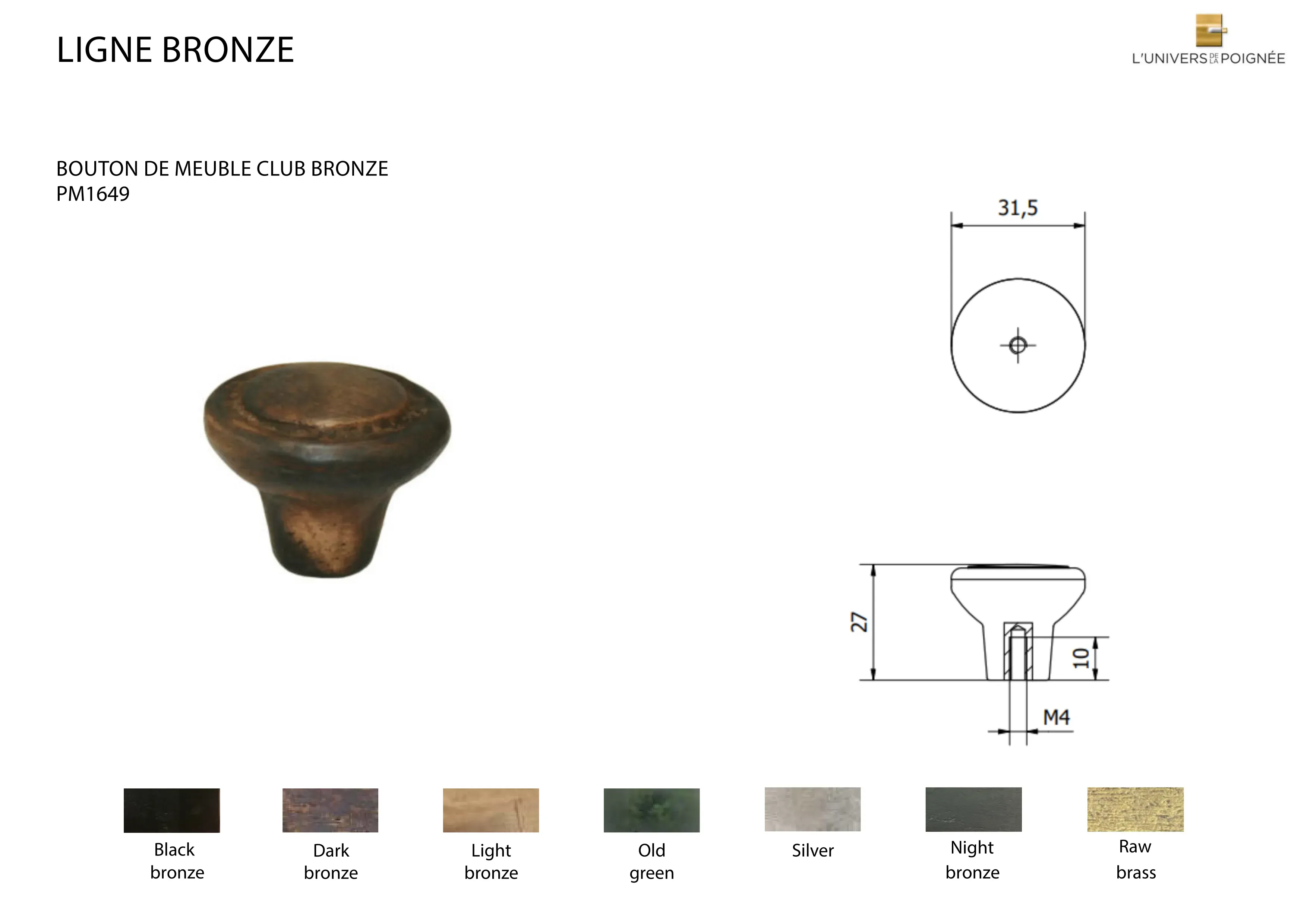 Le bouton de meuble Club PM1649 est un modèle rond de 32 mm de diamètre, conçu pour s’intégrer à une grande variété d’intérieurs, qu’ils soient modernes ou d’inspiration rétro. Son design classique et équilibré lui permet de s’adapter aussi bien aux meubles de cuisine, de salle de bain ou aux façades de placards et tiroirs.