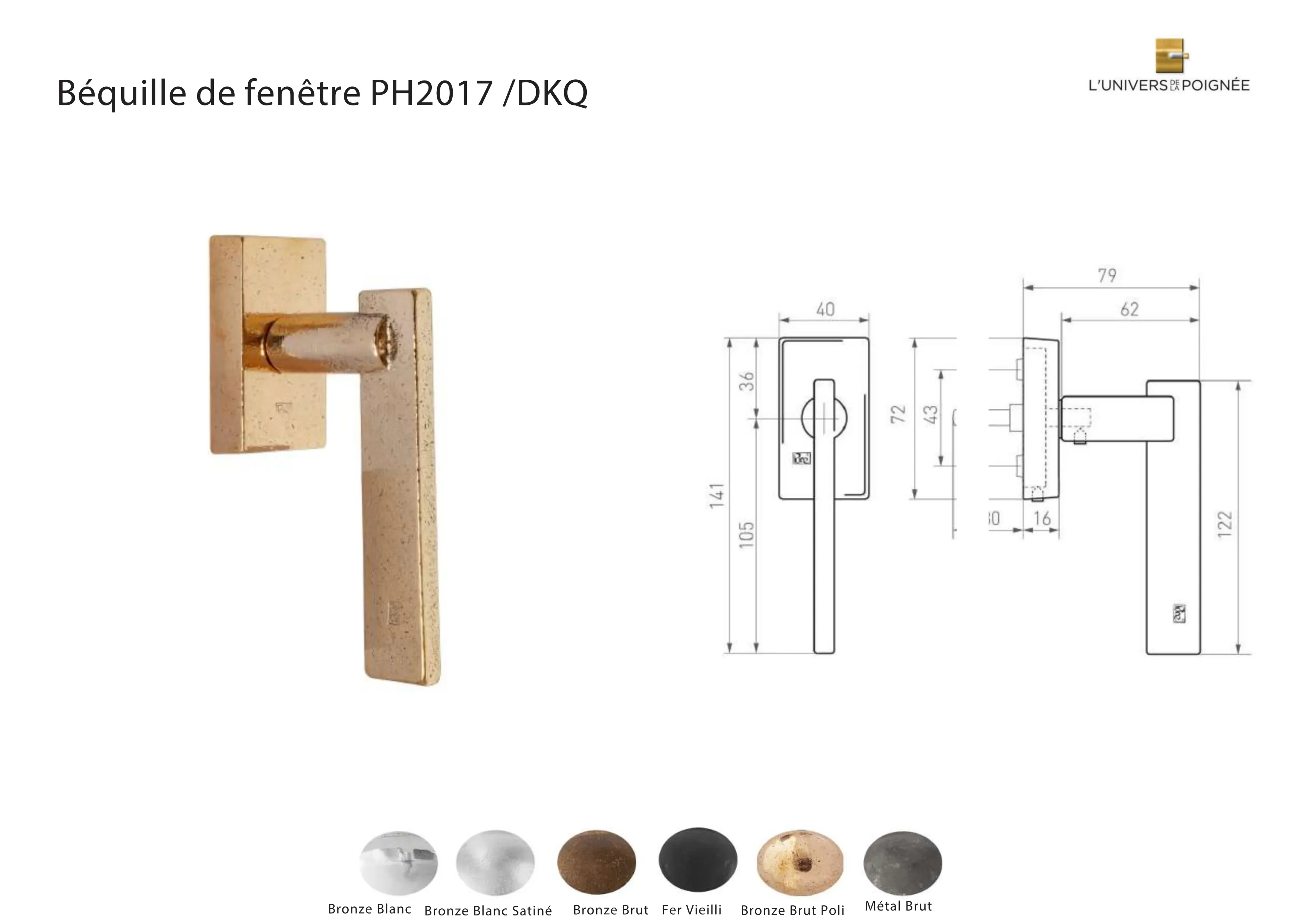 Poignée de fenêtre 2017 platine rectangle