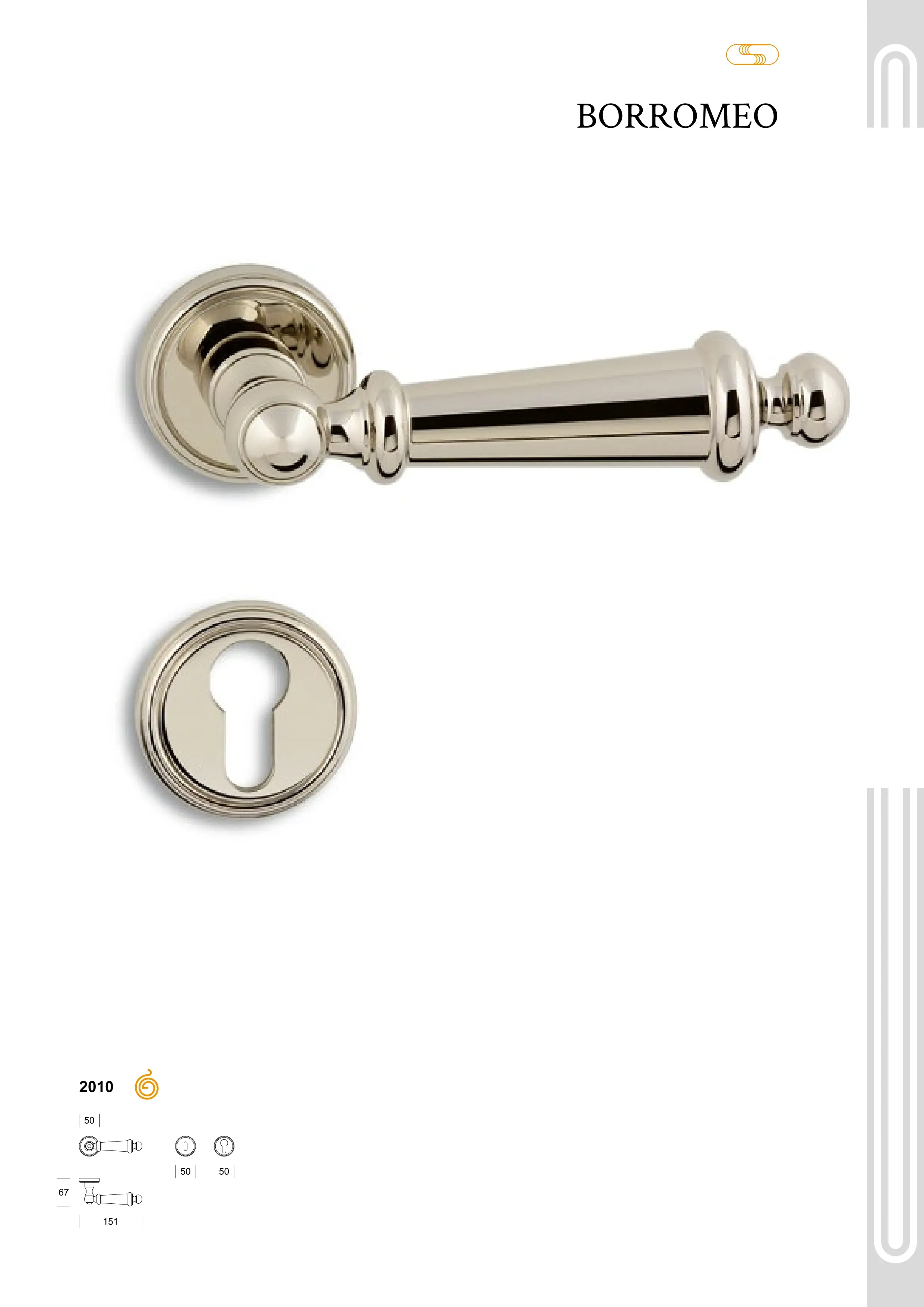 La collection Borromeo se décline également en poignée de fenêtre, en bouton de meuble, butoir de porte, paumelles et en poignée de tirage, permettant une cohérence esthétique sur l’ensemble des menuiseries.